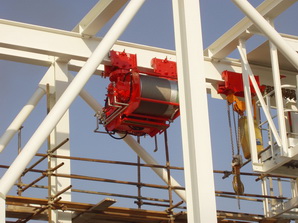 特征:这里使用的起吊葫芦里并列配置了2台气动马达和2台滚筒,因为1台泵用2根绳索来同步卷上卷下,因此有极高的安全性,即使有1根绳索断裂,也不会导致泵落下。使用气动或防爆电动,可在防爆区域安全使用; 卷上卷下时的速度可调整,定格的1/5; 臂式起动机与其它起动机比,价格相对便宜。